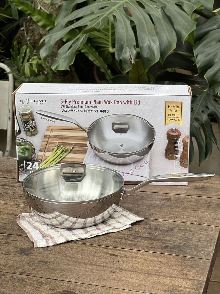 Chảo Inox 316 liền khối 5-Ply Premium Kaiyo 24cm (sâu lòng, vung kính)