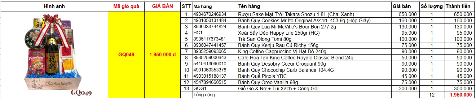| 13 | Giỏ Gỗ & Nơ + Túi Xách + Công Gói | GQG1 |