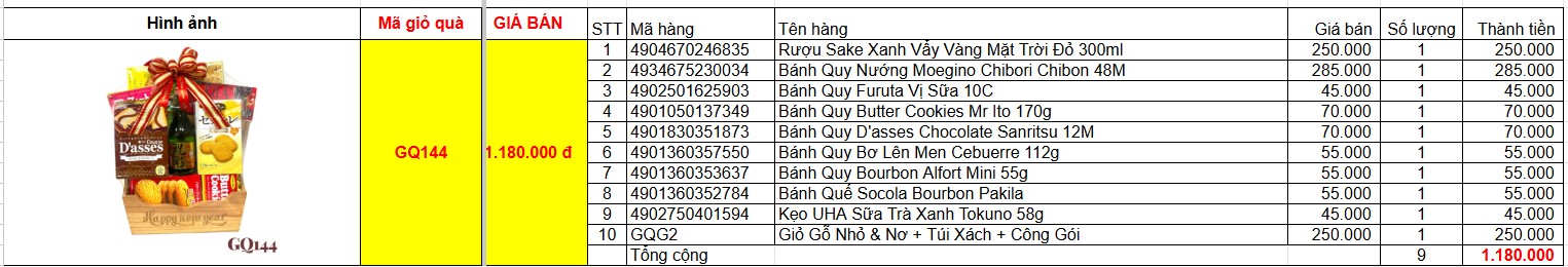| 10 | Giỏ Gỗ Nhỏ & Nơ + Túi Xách + Công Gói | GQG2 |