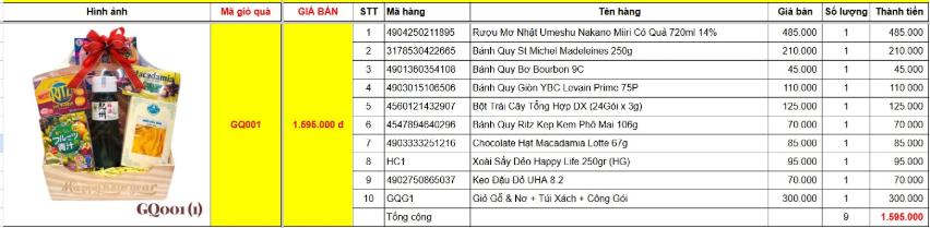 Bảng giá chi tiết giỏ quà tết GQ001(1)