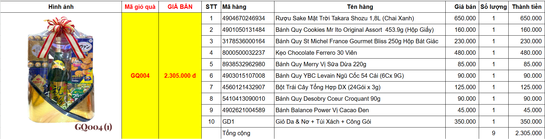 Bảng giá chi tiết giỏ quà tết GQ004(1)