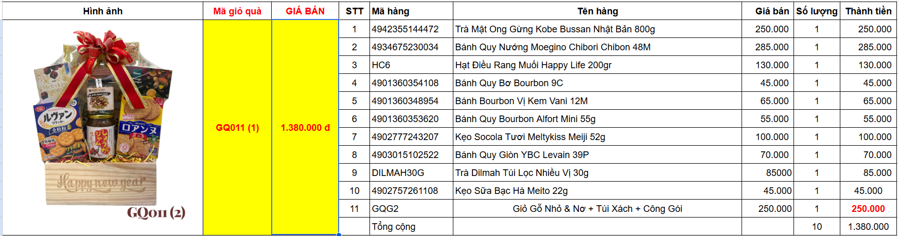 Bảng giá chi tiết giỏ quà tết GQ011(2)