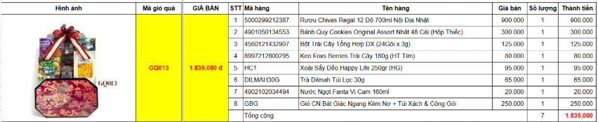 | 8 | Giỏ CN Bát Giác Ngang Kèm Nơ + Túi Xách & Công Gói | GBG |