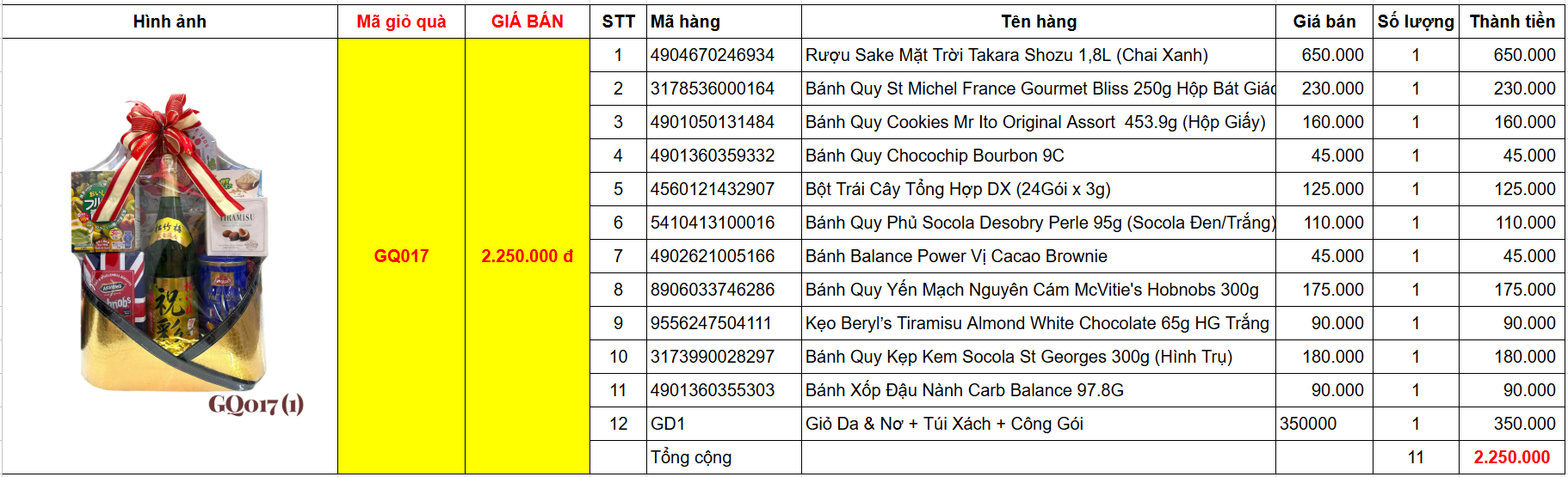 Bảng giá chi tiết giỏ quà tết GQ017(1)