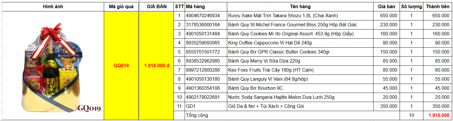 | 11 | Giỏ Da & Nơ + Túi Xách + Công Gói | GD1 |