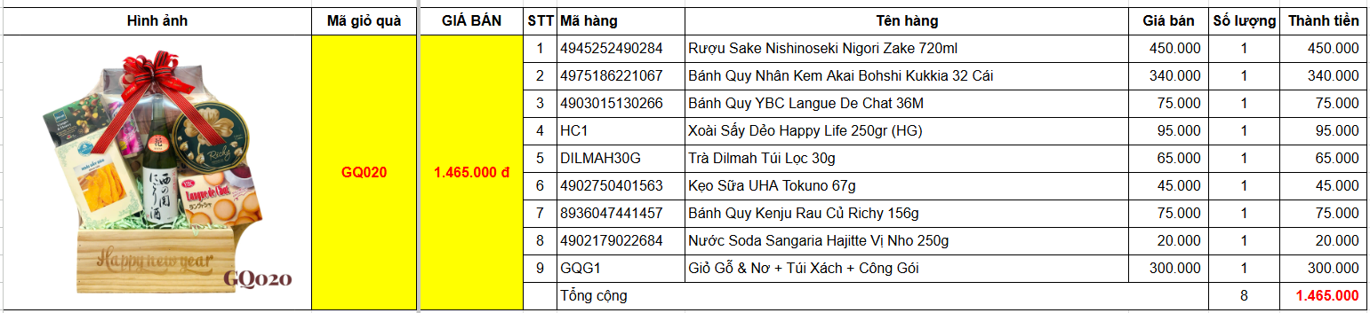 | 9 | Giỏ Gỗ & Nơ + Túi Xách + Công Gói | GQG1 |