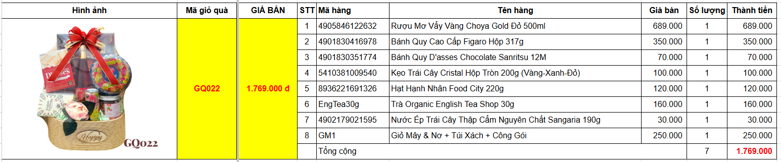 | 8 | Giỏ Mây & Nơ + Túi Xách + Công Gói | GM1 |