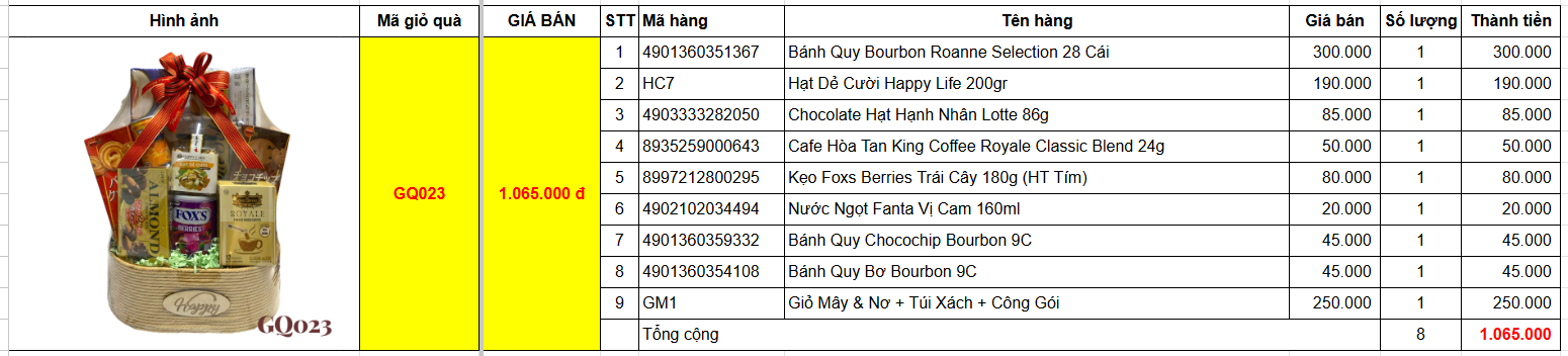 | 9 | Giỏ Mây & Nơ + Túi Xách + Công Gói | GM1 |