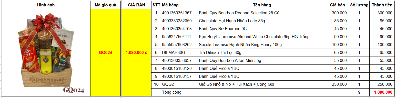 | 10 | Giỏ Gỗ Nhỏ & Nơ + Túi Xách + Công Gói | GQG2 |