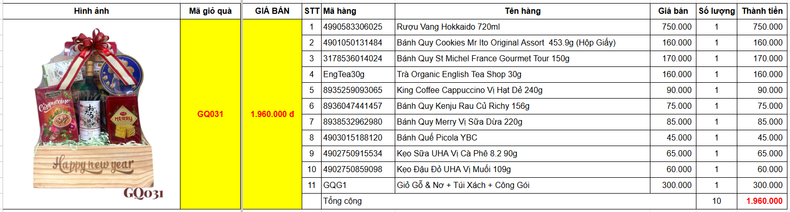 | 11 | Giỏ Gỗ & Nơ + Túi Xách + Công Gói | GQG1 |