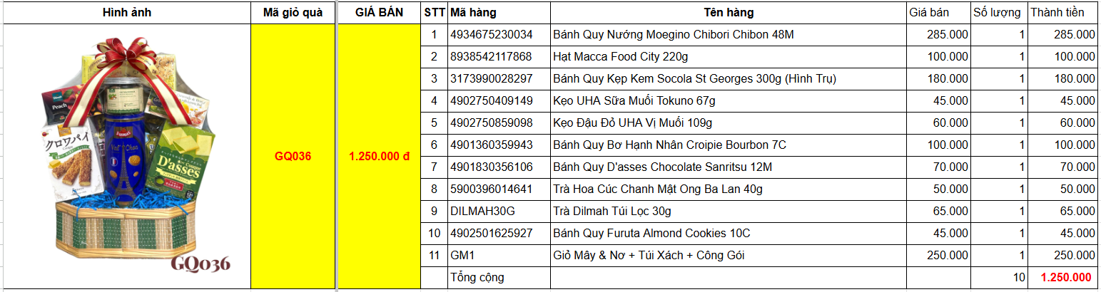 | 11 | Giỏ Mây & Nơ + Túi Xách + Công Gói | GM1 |