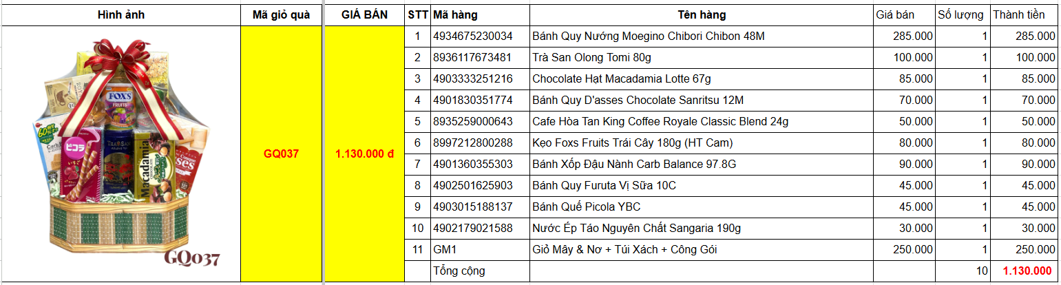 | 11 | Giỏ Mây & Nơ + Túi Xách + Công Gói | GM1 |