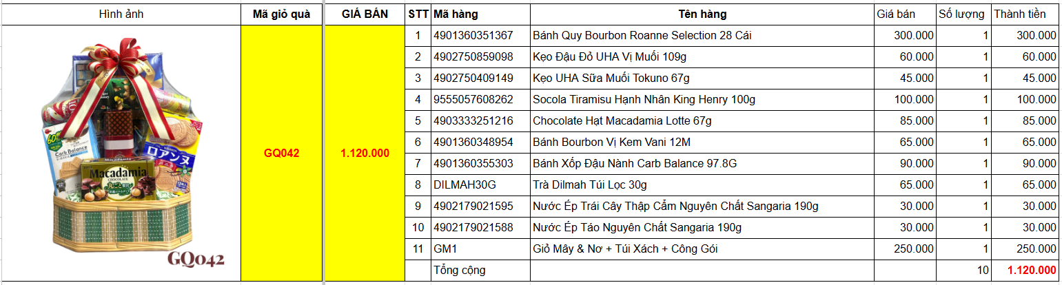 | 11 | Giỏ Mây & Nơ + Túi Xách + Công Gói | GM1 |