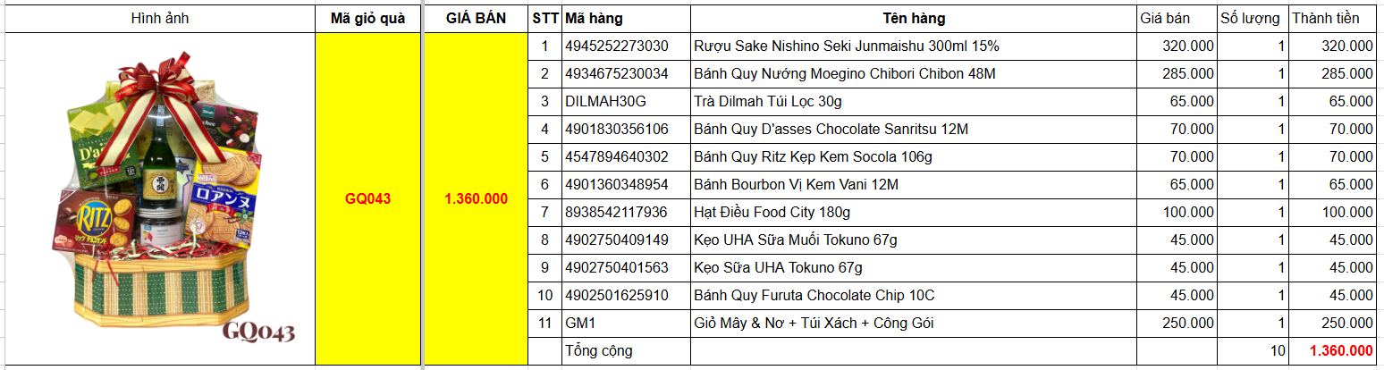 | 11 | Giỏ Mây & Nơ + Túi Xách + Công Gói | GM1 |