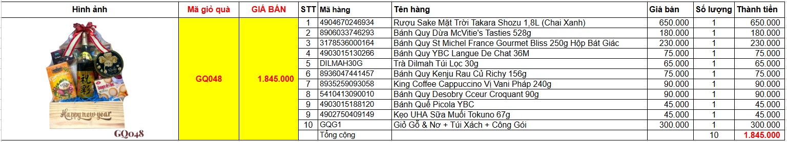 | 10 | Giỏ Gỗ & Nơ + Túi Xách + Công Gói | GQG1 |