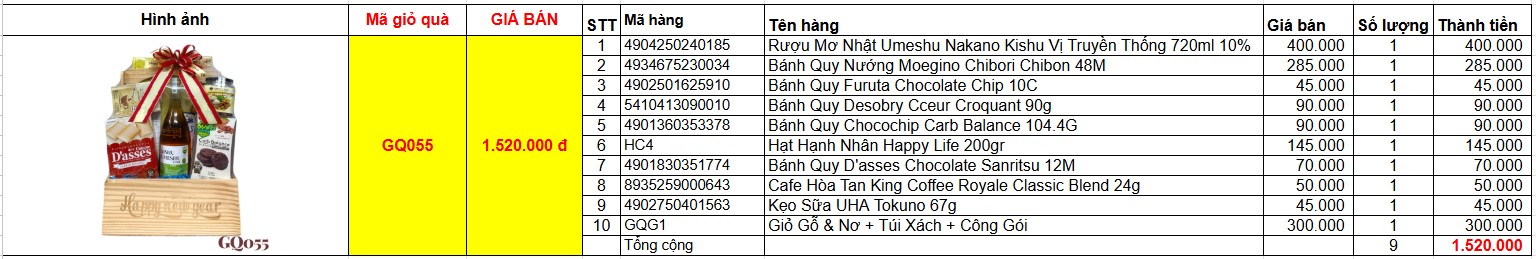 Bảng giá chi tiết giỏ quà tết GQ055