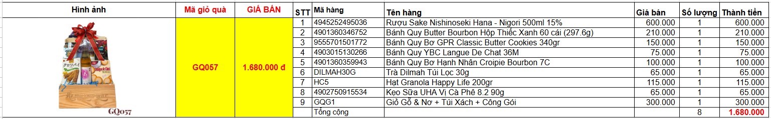 | 9 | Giỏ Gỗ & Nơ + Túi Xách + Công Gói | GQG1 |