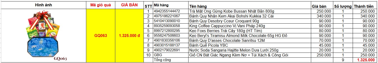 | 10 | Giỏ CN Bát Giác Ngang Kèm Nơ + Túi Xách & Công Gói | GBG |