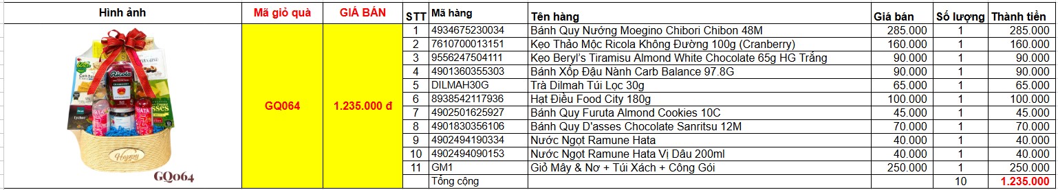 Bảng giá chi tiết giỏ quà tết GQ064