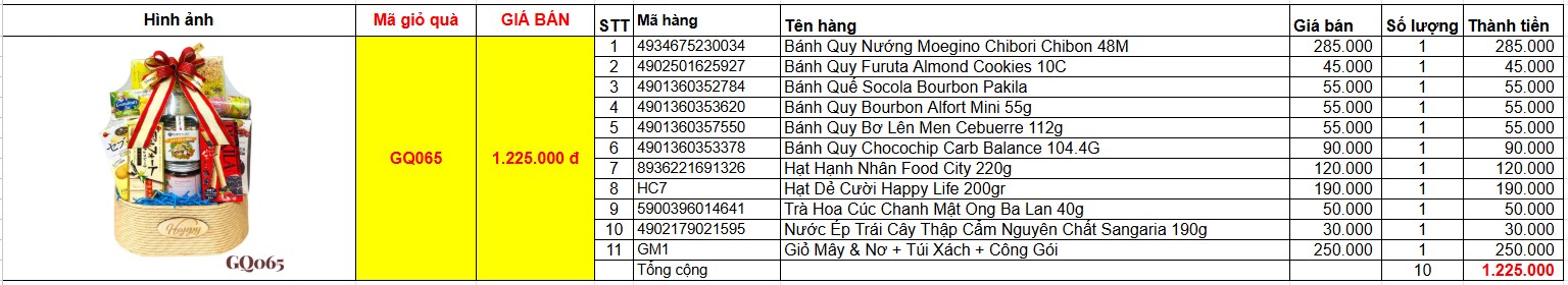 | 11 | Giỏ Mây & Nơ + Túi Xách + Công Gói | GM1 |