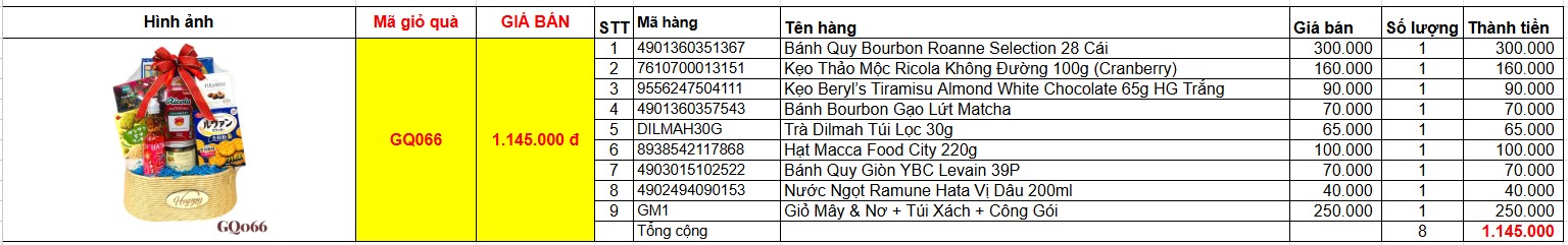 | 9 | Giỏ Mây & Nơ + Túi Xách + Công Gói | GM1 |