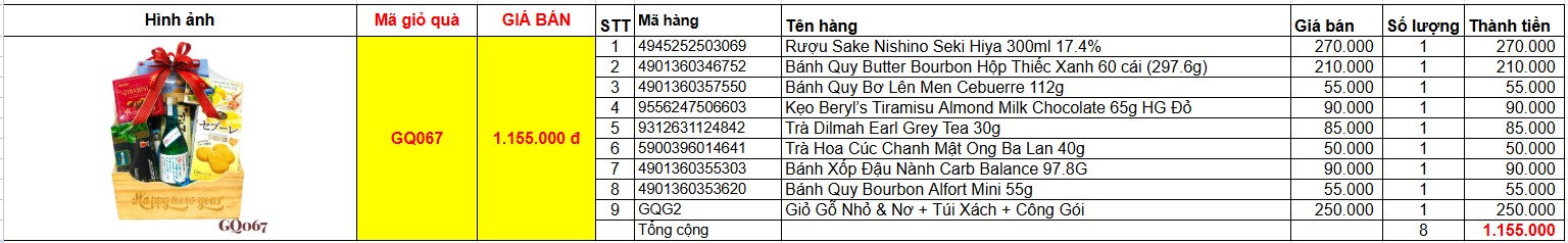 | 9 | Giỏ Gỗ Nhỏ & Nơ + Túi Xách + Công Gói | GQG2 |
