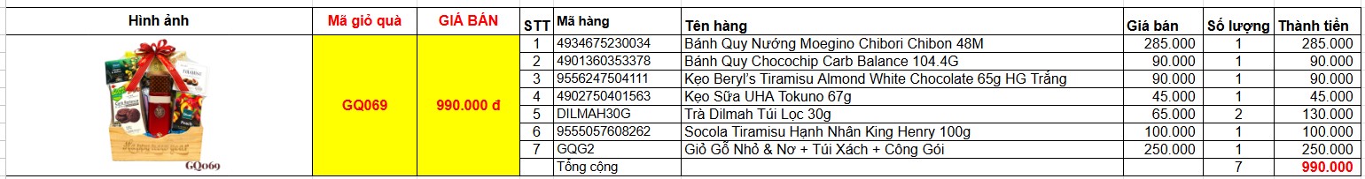 | 7 | Giỏ Gỗ Nhỏ & Nơ + Túi Xách + Công Gói | GQG2 |