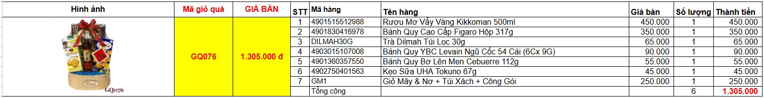 | 7 | Giỏ Mây & Nơ + Túi Xách + Công Gói | GM1 |