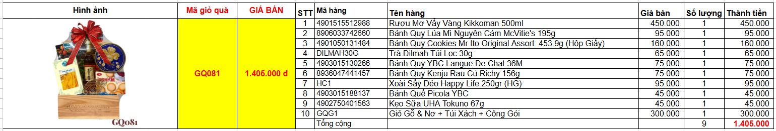 | 10 | Giỏ Gỗ & Nơ + Túi Xách + Công Gói | GQG1 |