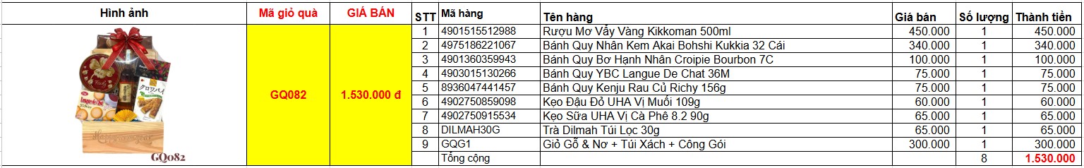 | 9 | Giỏ Gỗ & Nơ + Túi Xách + Công Gói | GQG1 |