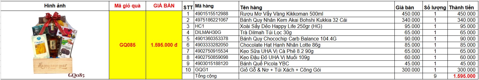 | 10 | Giỏ Gỗ & Nơ + Túi Xách + Công Gói | GQG1 |