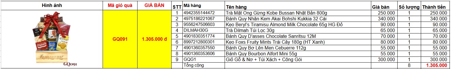 | 9 | Giỏ Gỗ & Nơ + Túi Xách + Công Gói | GQG1 |