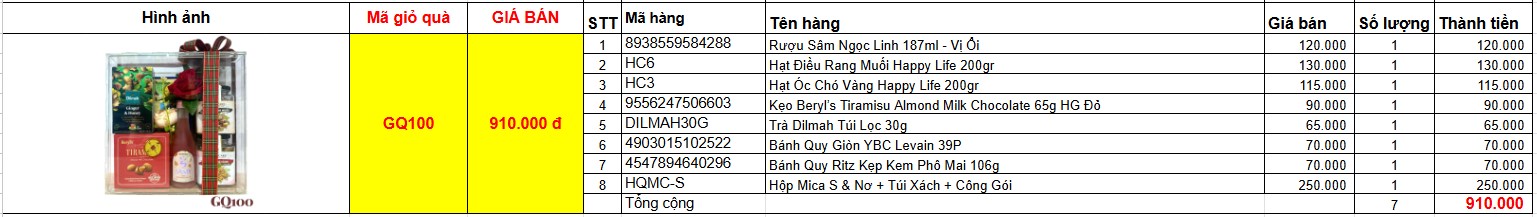 | 1 | Rượu Sâm Ngọc Linh 187ml - Vị Ổi | 8938559584288 |