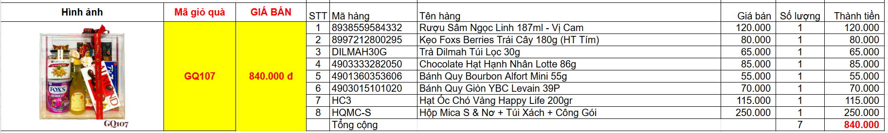 Bảng giá chi tiết giỏ quà tết GQ107
