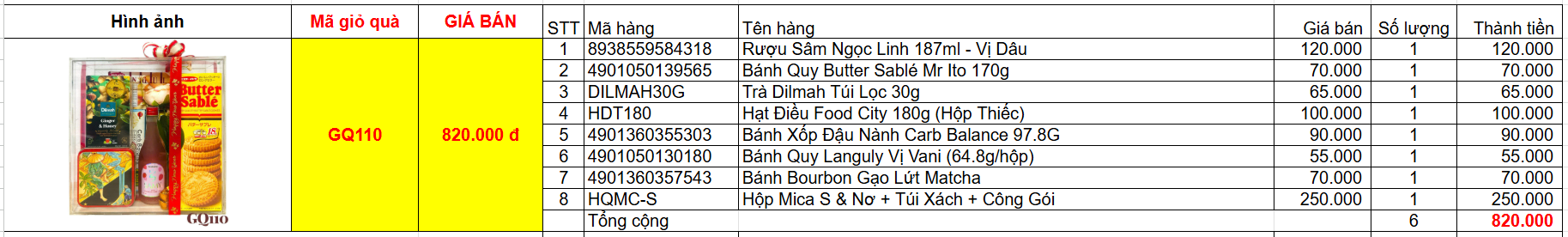 Bảng giá chi tiết giỏ quà tết GQ110