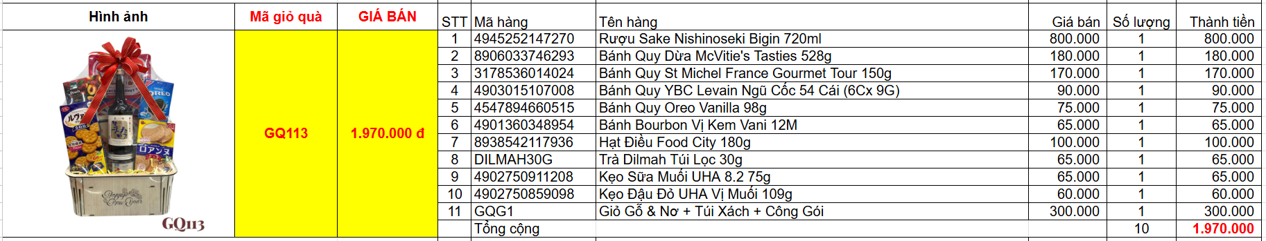 Bảng giá chi tiết giỏ quà tết GQ113