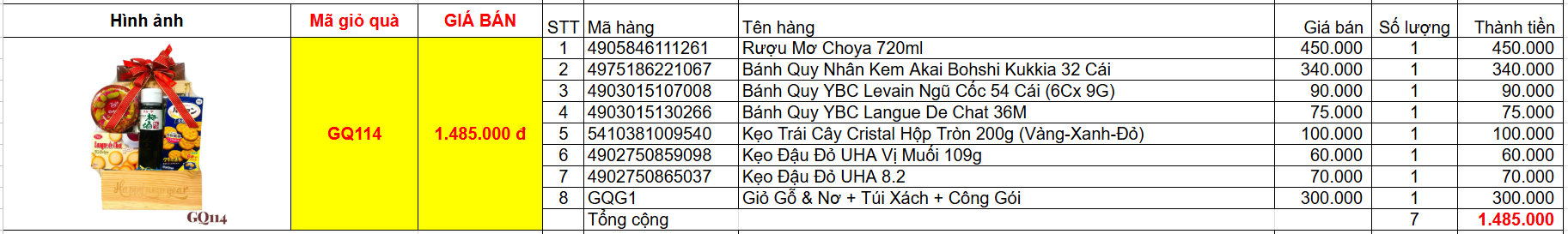 Bảng giá chi tiết giỏ quà tết GQ114