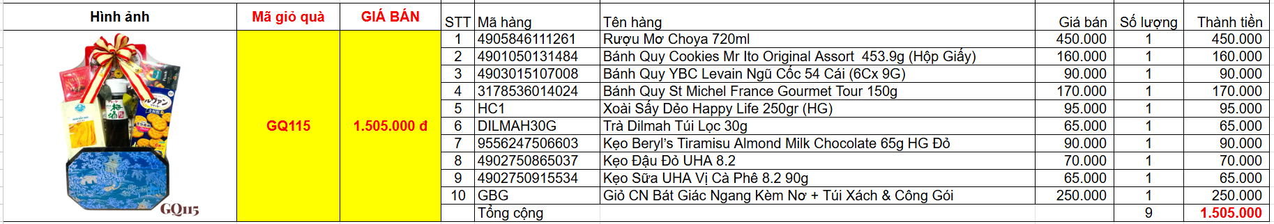 Bảng giá chi tiết giỏ quà tết GQ115