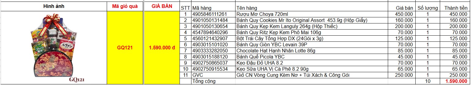 | 11 | Giỏ CN Vòng Cung Kèm Nơ + Túi Xách & Công Gói | GVC |