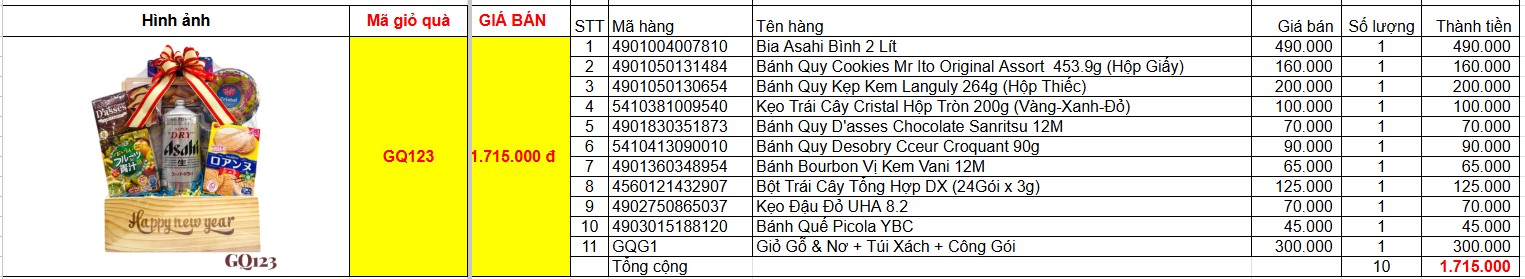 Bảng giá chi tiết giỏ quà tết GQ123