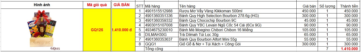 Bảng giá chi tiết giỏ quà tết GQ125