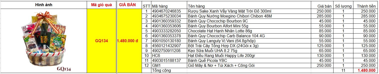 Bảng giá chi tiết giỏ quà tết GQ134