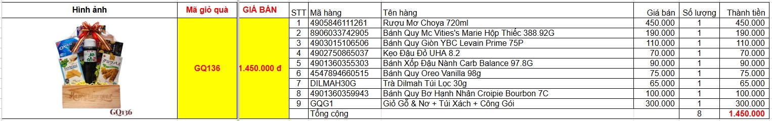 Bảng giá chi tiết giỏ quà tết GQ136