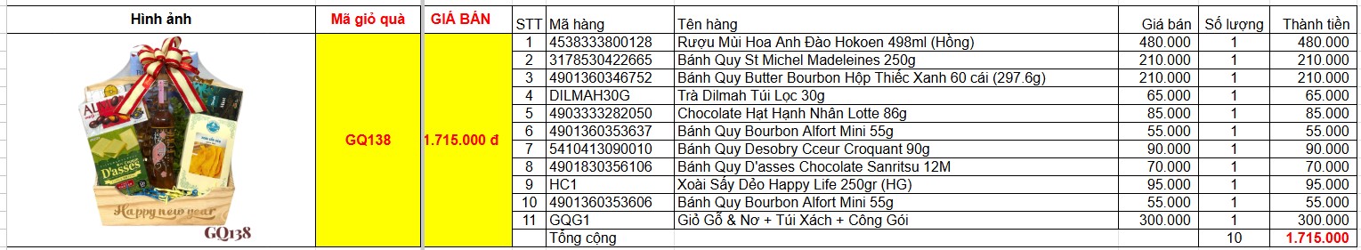 | 11 | Giỏ Gỗ & Nơ + Túi Xách + Công Gói | GQG1 |