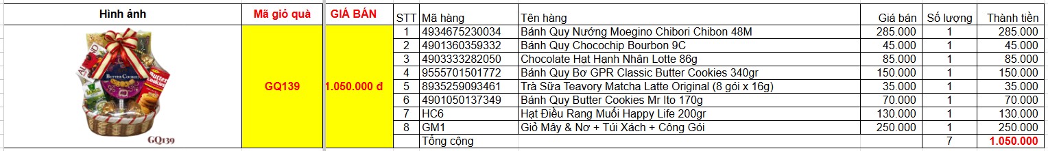 | 8 | Giỏ Mây & Nơ + Túi Xách + Công Gói | GM1 |