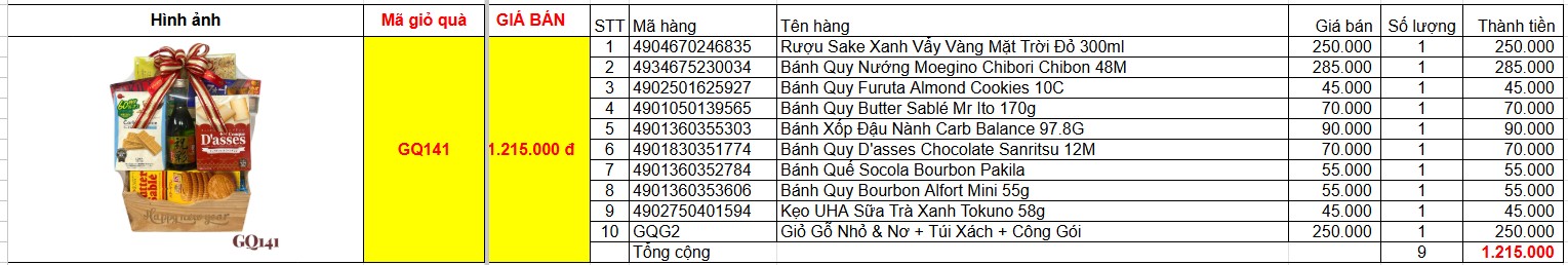Bảng giá chi tiết giỏ quà tết GQ141