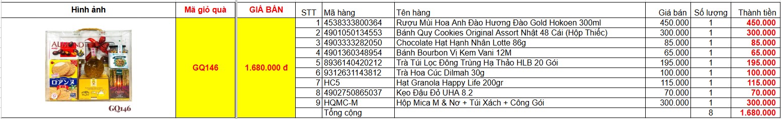 Bảng giá chi tiết giỏ quà tết GQ146