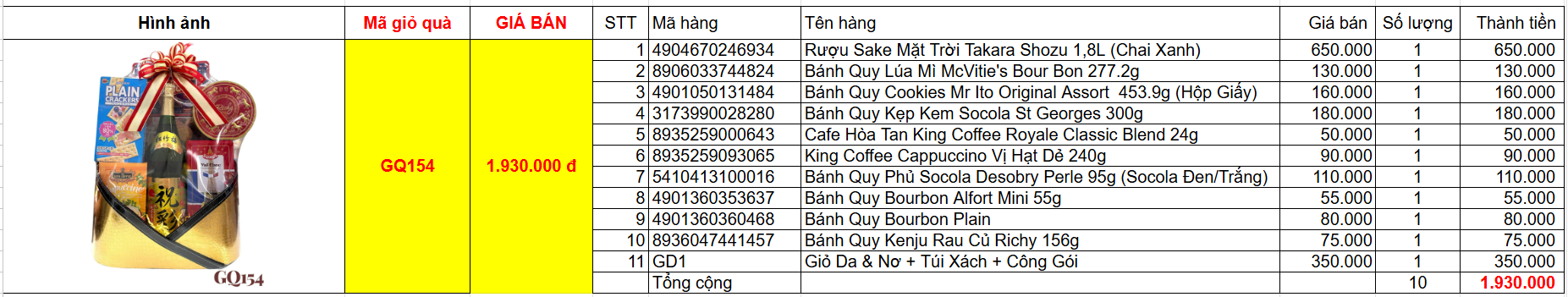| 11 | Giỏ Da & Nơ + Túi Xách + Công Gói | GD1 |
