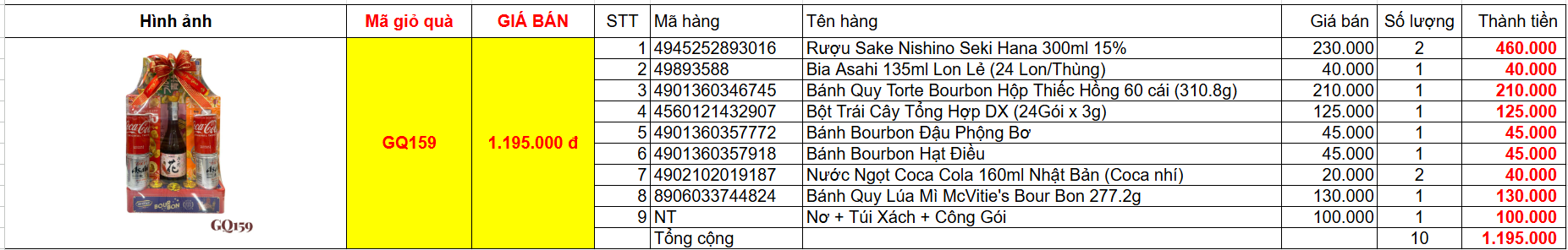 | 9 | Nơ + Túi Xách + Công Gói | NT |