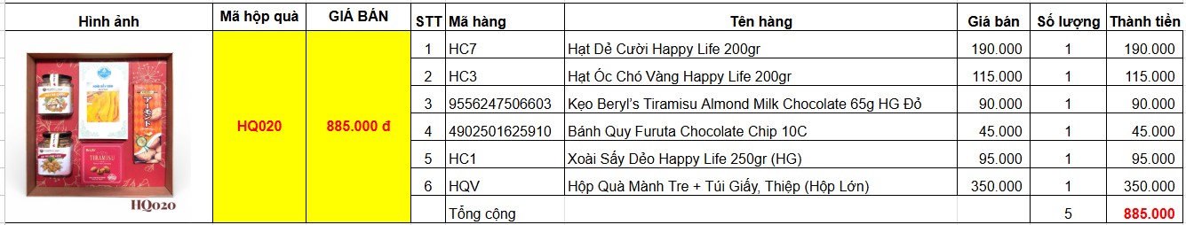 | 6 | Hộp Quà Mành Tre + Túi Giấy, Thiệp (Hộp Lớn) | HQV |